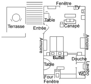Séjour avec coin "sommeil", cuisine avec coin repas, une salle d'eau, une terrasse privative.